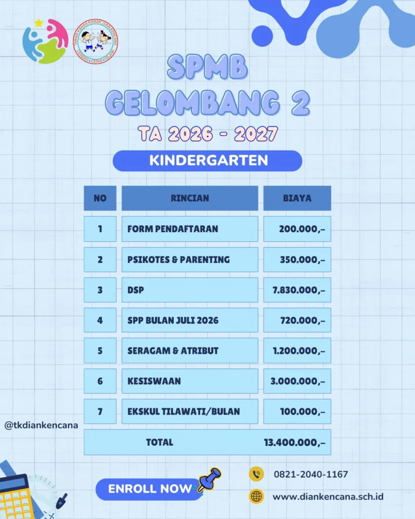 Bagi Ayah/Bunda yang ingin menitipkan putra/putrinya di Preschool atau TK Dian Kencana kami persilahkan, untuk pendaftaran bisa secara online atau offline datang langsung ke lokasi kami.